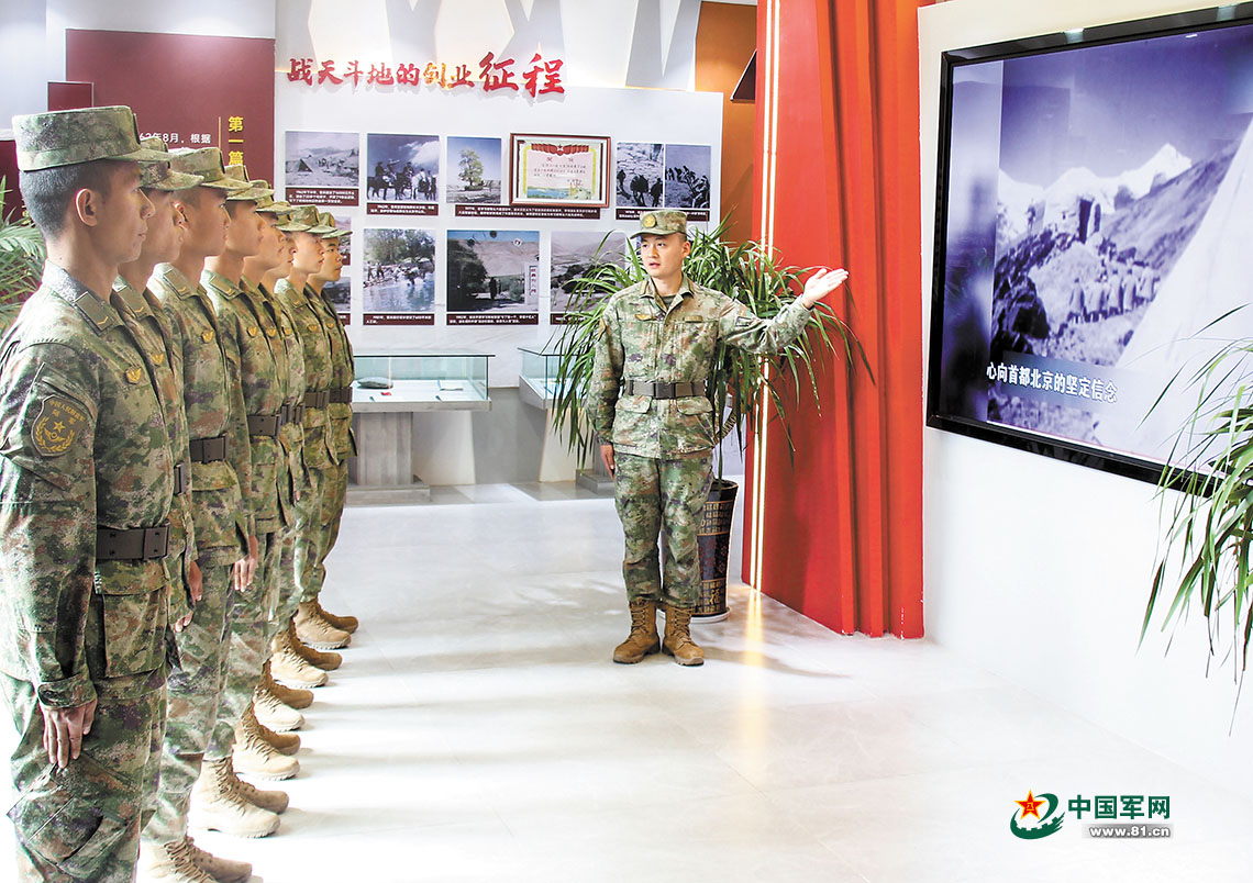 新疆克孜勒苏军分区组织新兵学习先辈艰苦戍边事迹,强化勇于担当、无私奉献精神。陈斌 摄