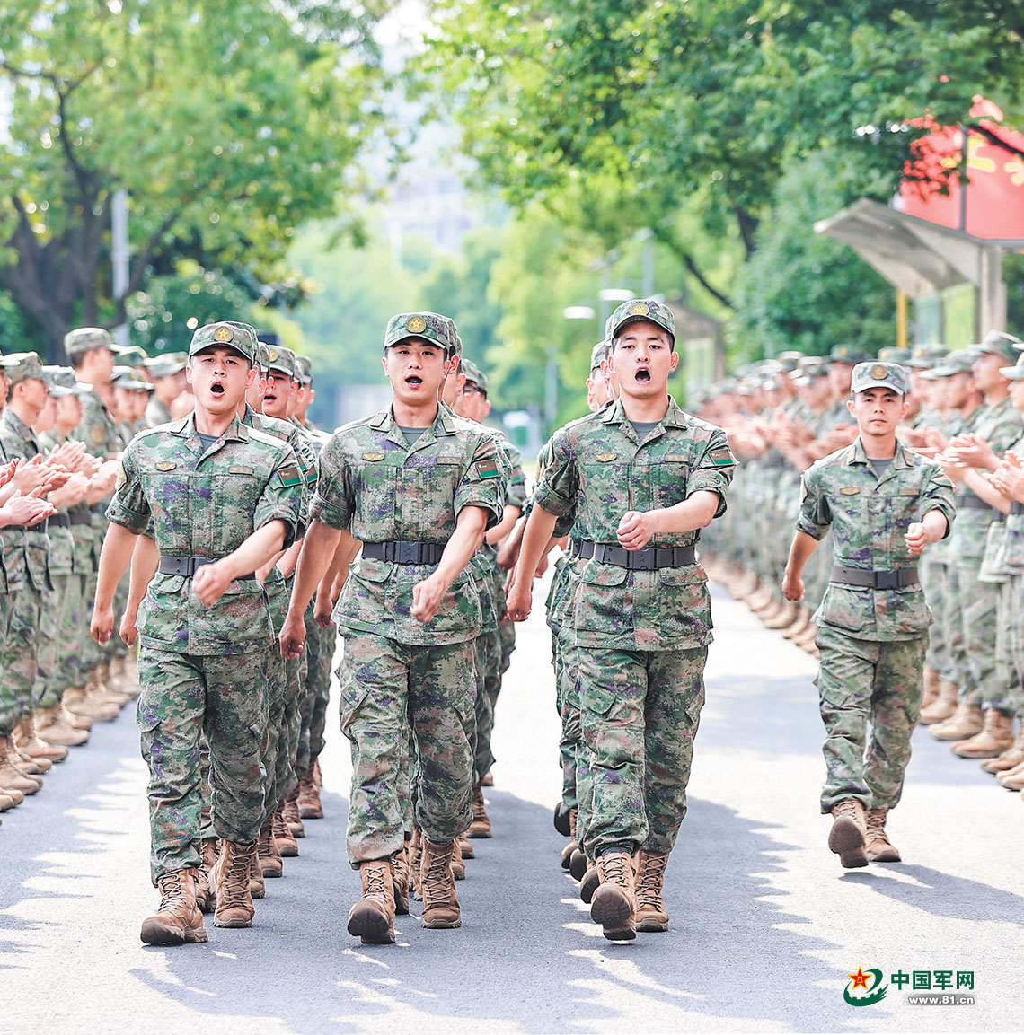 第71集团军某旅为下连新兵举行欢迎仪式,新兵们以昂扬的精神面貌列队步入营区。黄振宇 摄