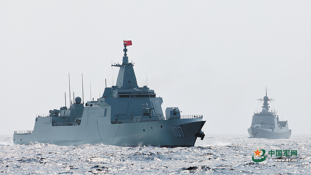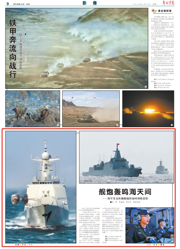 夏日,海军某支队舰艇编队正在某海域破浪航行。