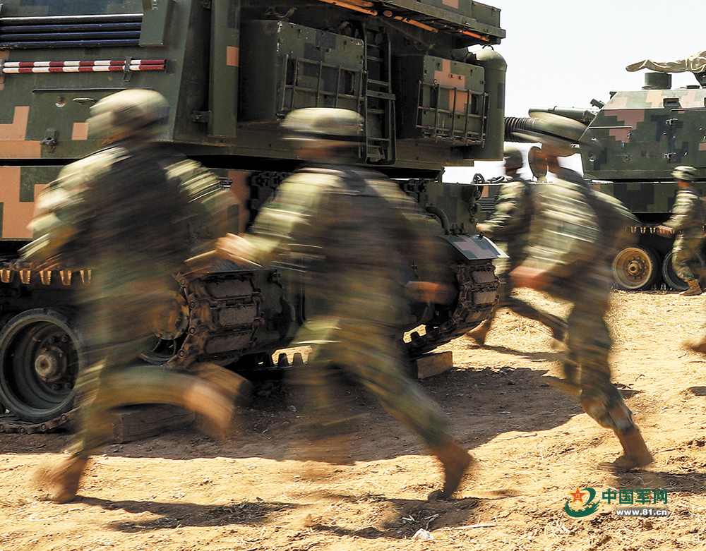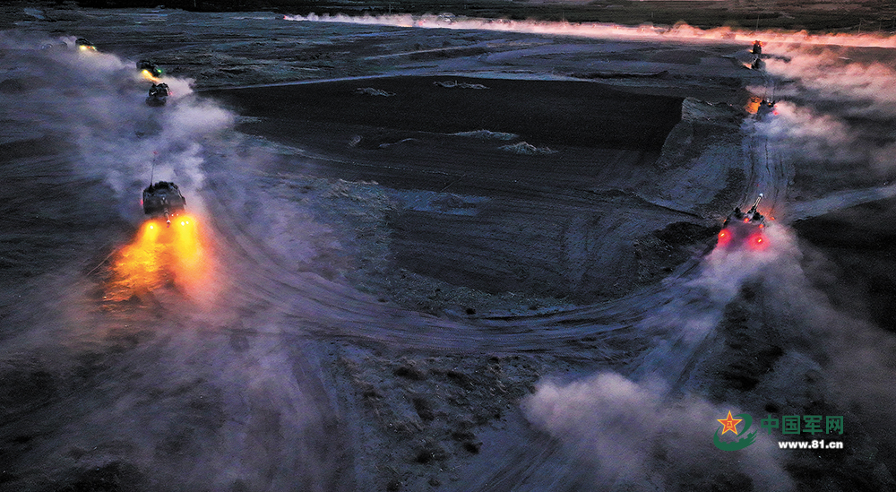 “出发!”一声令下,官兵快速登车,战车编队向预定地域疾驰而去。