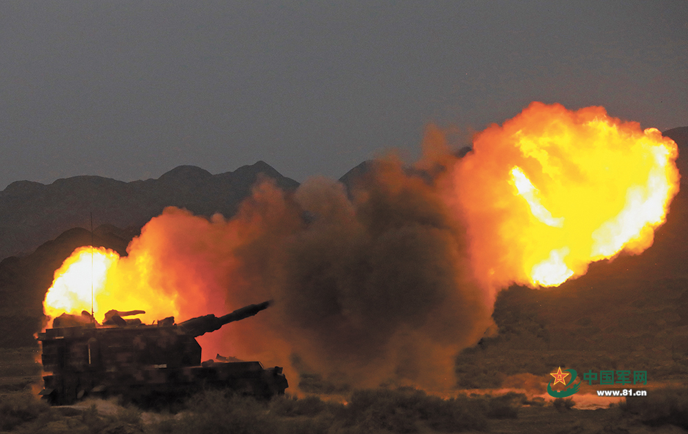 “放!”射击命令下达。炮声震天,一发发炮弹呼啸出膛。首轮打击完毕,炮兵分队快速机动转移至预备阵地,对目标展开新的打击。