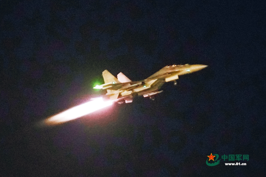 座舱盖缓缓关闭,机务官兵立即取下悬梯,拔掉电缆和保险销,举旗警戒。发动机的轰鸣声趋于稳定,机械师进行复查,确认无误后指挥机务撤开轮挡。战机滑出起飞,拖着尾焰直刺云霄,在机务官兵的目送中渐渐消失在天际。