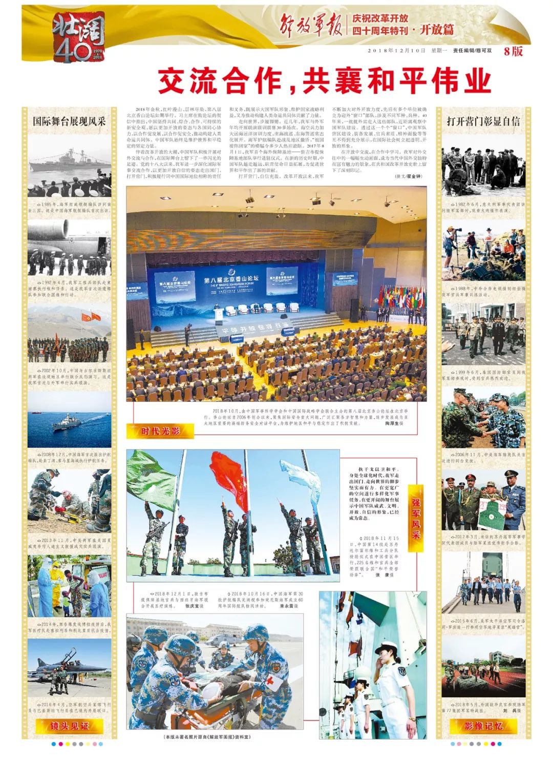 在开放中交流,在合作中学习。我军对外交往中的一幅幅生动画面,成为当代中国外交独特而富有魅力的景象,在共和国改革开放史册上留下了深刻印记。