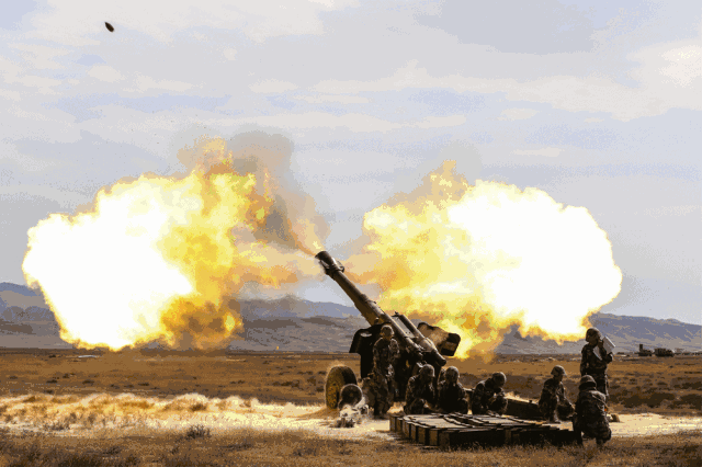 近日,西北戈壁,炮声阵阵,硝烟弥漫。新疆军区某炮兵团将部队拉至戈壁生疏地域,组织跨昼夜炮兵群实弹射击演练——