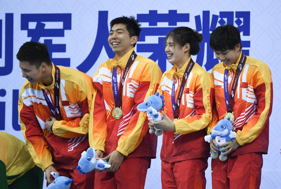 游泳——男女4×100米混合泳接力:中国队夺冠