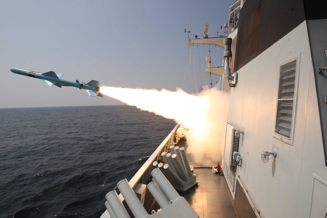 2016年9月12日,海军黄石舰在训练中实射反舰导弹。新华社发(王光杰 摄)