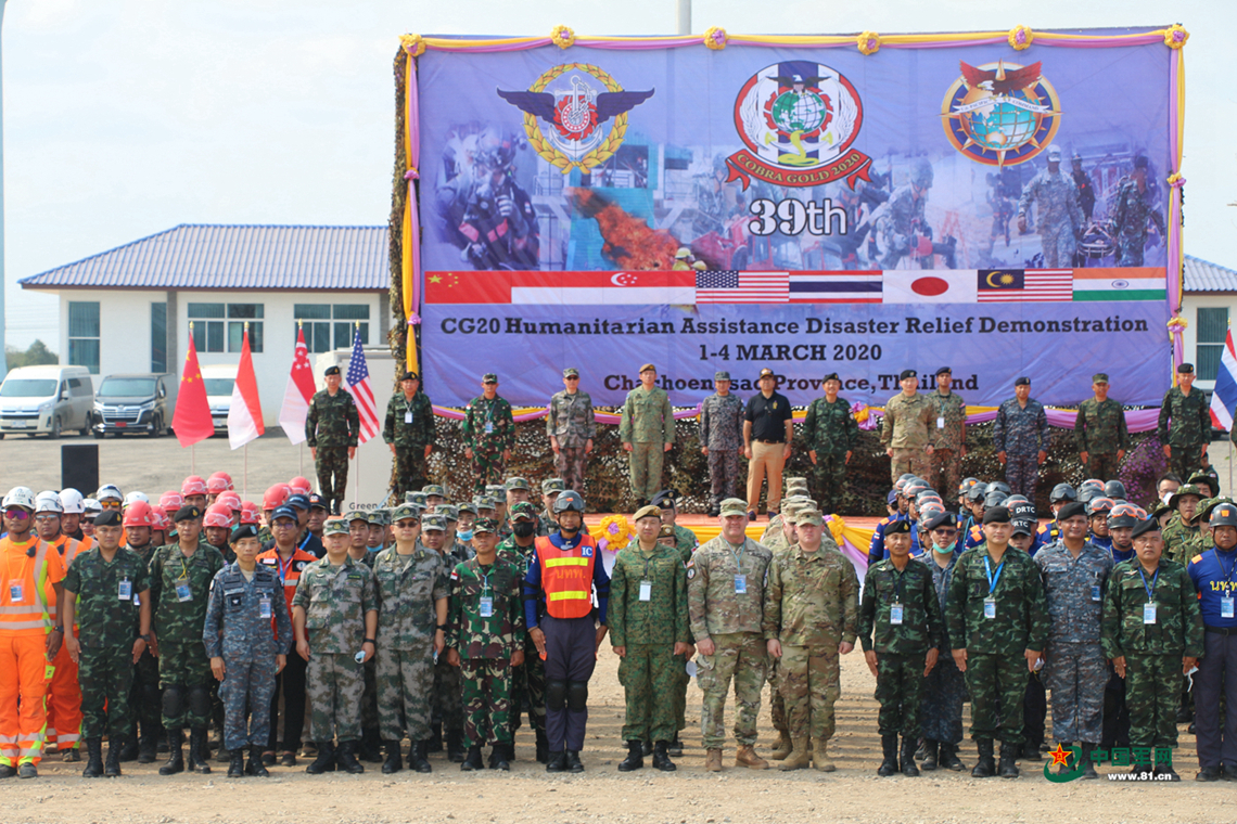 3月1日至3月4日,“金色眼镜蛇-2020”联合军演人道主义救援减灾实兵演练在泰国北柳府国家减灾训练中心举行。中国、美国和泰国等7国200余名官兵和民事人员参加。我军参演的20余名官兵与他国参演人员混合编成水上救援组、泥石流救援组、建筑物倒塌和火灾救援组、医疗急救组,全程参与演练。