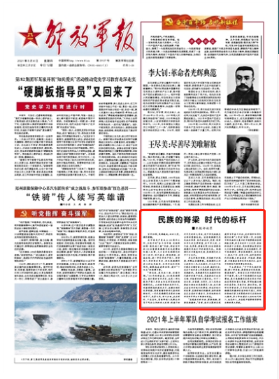 习主席指出,“对中华民族的英雄,要心怀崇敬,浓墨重彩记录英雄、塑造英雄”。要结合正在开展的党史学习教育,深入学习英雄模范的先进事迹,展示英雄模范在党史军史中的地位作用和重大贡献,牢牢把握正确的价值导向、思想导向、舆论导向。要牢记职责使命,引导官兵深切感悟英雄模范的精神价值和时代意义,传承弘扬他们身上所展现的非凡品格和伟大精神,努力争做堪当大任的时代新人、红色传人,为实现中国梦强军梦作出新的更大贡献。