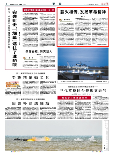 精神所在,就是血脉所在,就是力量所在。站在“两个一百年”的历史交汇点上眺望前方,有阳光也有风雨,有坦途也有险阻。当此之际,我们比任何时候都更加深刻地感受到“船到中流、人到半山”的艰险,也比任何时候都更加需要“雄健的精神”的支撑。在党史学习教育中,我们应把红色资源利用好、把红色传统发扬好、把红色基因传承好,自觉接受思想洗礼,持续汲取精神力量,不断推进新时代强国强军事业。