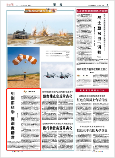 军事训练是生成和提高战斗力的主要途径。重视科学组训、精准施训,是我军军事训练工作的好传统、好做法。毛泽东同志曾说:“不解决桥或船的问题,过河就是一句空话。不解决方法问题,任务也只是瞎说一顿。”同样的武器装备、同样的训练时间、同样的保障条件,不同单位在训练质量上却能拉开差距,主要原因就在于组训模式是否科学、施训方式是否精准。