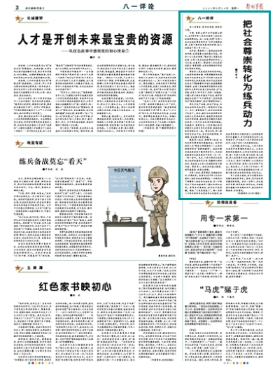 军人生来为战胜,老百姓最看重的是能打胜仗的军队。胜利,是对社会尊崇最好的回报。身为一名军人,应认真研究军事、研究战争、研究打仗,不断提高打赢能力和实战化水平,真正做到不辱使命、不负重托。