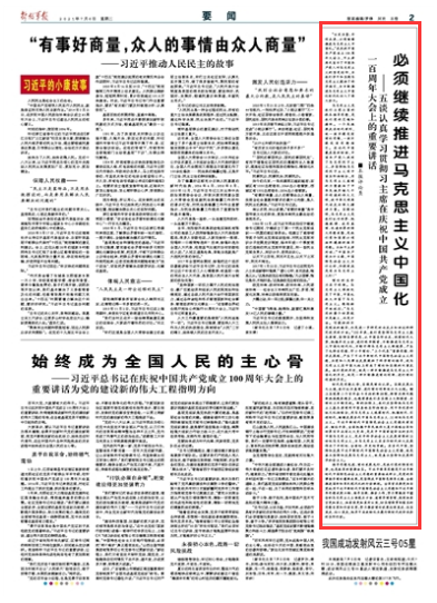 ——五谈认真学习贯彻习主席在庆祝中国共产党成立一百周年大会上的重要讲话