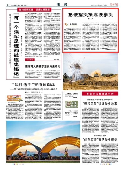 指头再有劲,也不及拳头的力量。然而在平时训练中,个别部队对新型作战力量训练研究不够,使用不当。有的用新型作战力量“撑门面”,只图热闹,不问实效;有的把新型作战力量当“万金油”,好钢并没有用在刀刃上;还有的将新质战斗力建设游离于作战体系之外。这些现象要是不杜绝,就会影响新质战斗力的生成,使其难以发挥应有作用。
