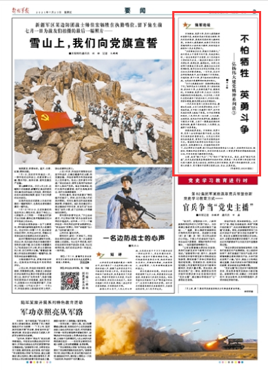 “为什么战旗美如画?英雄的鲜血染红了它。”战争是血与火的较量,军人面临的挑战、参加的斗争,从来都是最严峻、最惨烈的。不怕牺牲、英勇斗争,已成为人民军队的精神底色和英雄品格。90多年来,人民军队在党的旗帜下前进和战斗,所有的功勋、荣誉和辉煌,都是用鲜血和生命铸就的。