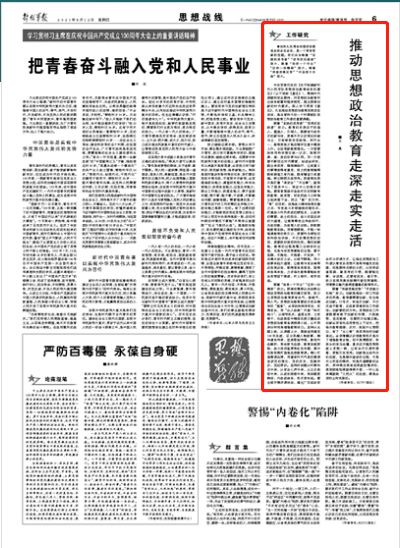 ●如何扎实推动思想政治教育走深走实走活,是一个常讲常新的话题。我们应当朝着“实践的思考者”“思考的实践者”努力,朝着“给我一个平台”“还你一份精彩”努力,朝着“突破思维定势”“开启接力长跑”努力。