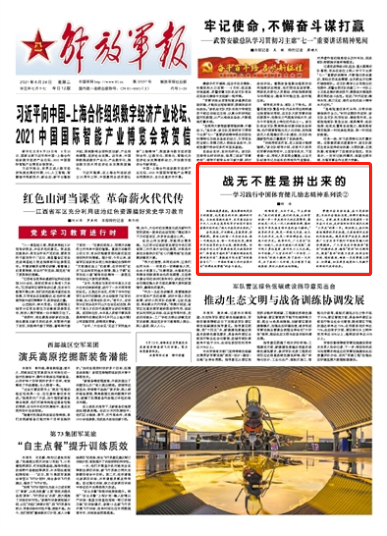 艰难困苦,玉汝于成。习主席指出:“我们的国家,我们的民族,从积贫积弱一步一步走到今天的发展繁荣,靠的就是一代又一代人的顽强拼搏,靠的就是中华民族自强不息的奋斗精神。”我军的历史,既是一部战无不胜、攻无不克的历史,也是一部拼搏奋进、浴血战斗的历史。战争年代,广大官兵“压倒一切敌人,而决不被敌人所屈服”,面对炮火勇往直前,面对死亡义无反顾。和平时期,广大官兵传承“一不怕苦、二不怕死”的战斗精神,除了胜利一无所求,为了胜利一无所惜,充分彰显了逢敌亮剑、敢打必胜的血性胆魄。