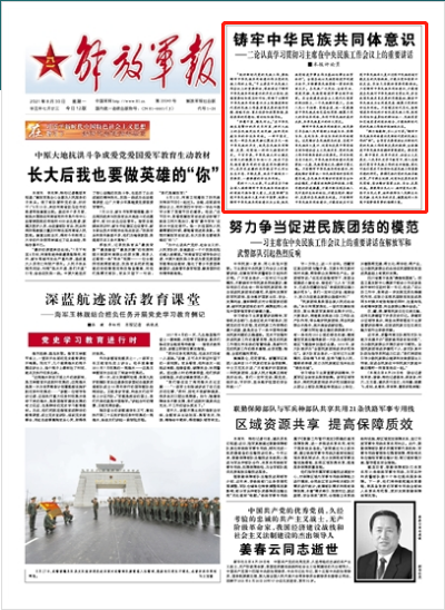 “群力谁能御,齐心石可穿。”铸牢中华民族共同体意识是新时代党的民族工作的“纲”。全军官兵要深刻认识新时代党的民族工作创新发展的规律,全面推进中华民族共有精神家园建设。要在党史、新中国史、改革开放史、社会主义发展史、人民军队史学习教育中,深入总结我们党百年民族工作的成功经验,深化对我们党关于加强和改进民族工作重要思想的研究。要模范执行党的民族宗教政策,严守群众纪律,巩固和发展军政军民团结,坚决维护国家主权、安全、发展利益。要秉持为民之心、满怀爱民之情、恪守为民之责,始终保持与人民群众水乳交融、生死与共的关系,凝聚起同心共筑中国梦强军梦的磅礴力量。
