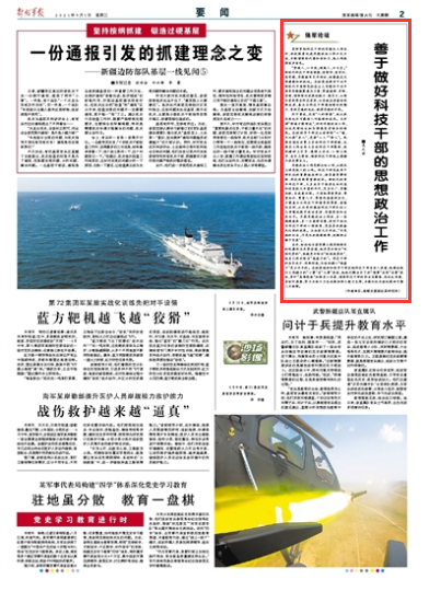 某部紧贴科技干部的思想与工作实际,积极探索改进思想政治工作方式方法,不断增强时代感和亲和力,把工作做得有声有色。