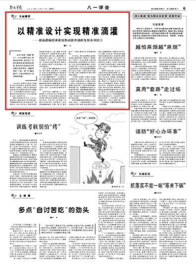 当前,各部队灌输授课的针对性有了很大提高,但应看到,大水漫灌式、运动式的授课施教还不同程度存在:有的思想摸排“大呼隆”,具体不到人头;有的灌输授课求“一次性解决问题”,缺乏持续性;有的教育治理“两张皮”,只务虚不务实,搞空对空。这种撒胡椒面的粗放式灌输授课,何来针对性?难怪有的官兵吐槽“宁愿在练兵场上流汗,也不愿在空调房里听课”。