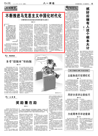 实践发展永无止境,理论创新也永无止境。理论惟有“常新”,才能“常青”。全军官兵要准确学习领会、毫不动摇贯彻落实习近平强军思想,推动这一思想往深里走、往实里走、往心里走,在强化担当、提高能力上见成效,在解决问题、推动工作上见成效,夺取全面推进国防和军队现代化的新胜利。