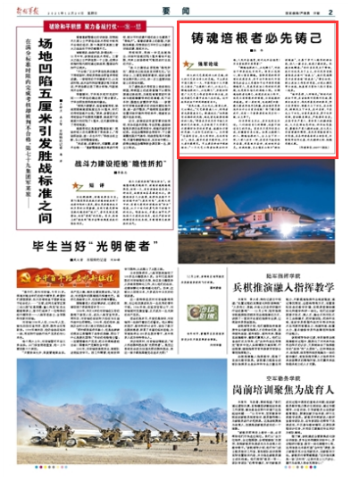 伟大的文艺展现伟大的灵魂,伟大的文艺来自伟大的灵魂。习主席在中国文联十一大、中国作协十大开幕式上指出,“立德树人的人,必先立己;铸魂培根的人,必先铸己”,并殷切希望广大文艺工作者坚持弘扬正道,在追求德艺双馨中成就人生价值。这对我军政治干部同样颇有启示。