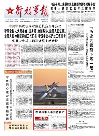 “力量生于团结,幸福源自奋斗。”一支军队的强大,最根本在于有强大的凝聚力和战斗力。只有广大官兵心往一处想、劲往一处使,才能攻克强军征程上的险关隘口。