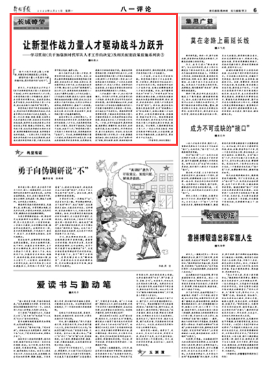 新型作战力量人才是战斗力新的增长极,是夺取胜利的“台柱子”。