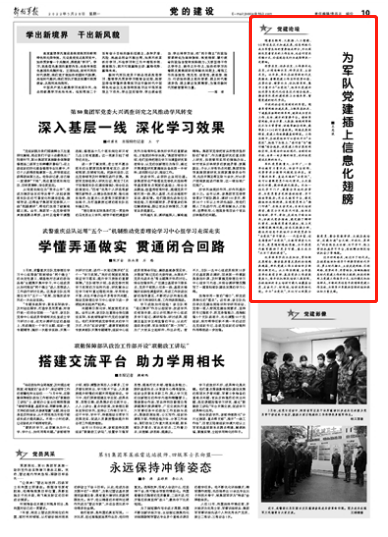 开放的社会没有封闭的军营。随着军营网络快速发展,上联军委机关、下通基层班排的强军网,逐渐成为官兵工作、生活、娱乐的重要平台。借助军营网络,将云计算、大数据、物联网等新技术与日常管理、训练等融合创新,能带来1+1>2的可喜效果。网络发展到哪里,党建工作就要覆盖到哪里。工作实践中,各级党组织可以尝试开办“云党校”,把线下与线上、“面对面”与“键对键”结合起来,使党建工作扩展到网络空间,实现由传统向现代、由封闭向开放、由单一向多维的转变,使传统党建迸发新的活力。