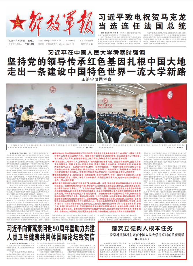解放军报评论员:落实立德树人根本任务