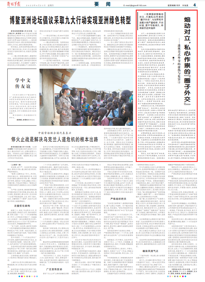 在百年变局、世纪疫情和各种危机交织叠加的当下,抱着早该被丢进历史垃圾堆的冷战思维不放,甚至沉溺其中不能自拔,这实为逆时代潮流而动。世界不需要“新冷战”,一些美国政客煽动对立,大搞私心作祟的“圈子外交”,与世界和平发展大势严重相悖,不合时宜,更不可能持久,终将被历史所抛弃。