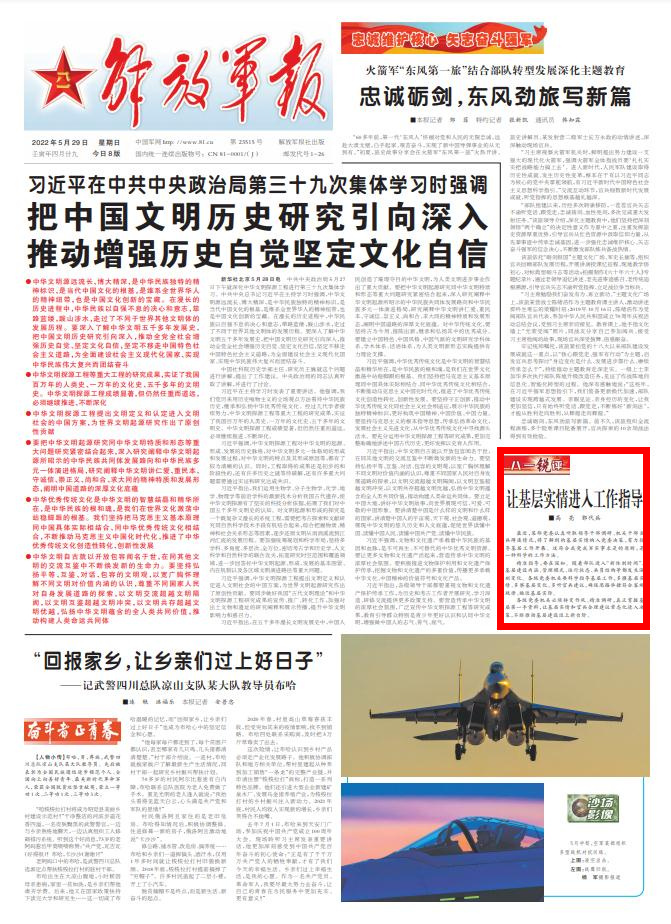 各级党委机关必须转变作风、精准调研,真正掌握基层第一手资料,让基层实情和官兵合理建议常态化进入决策,不断推动基层建设迈上新台阶。