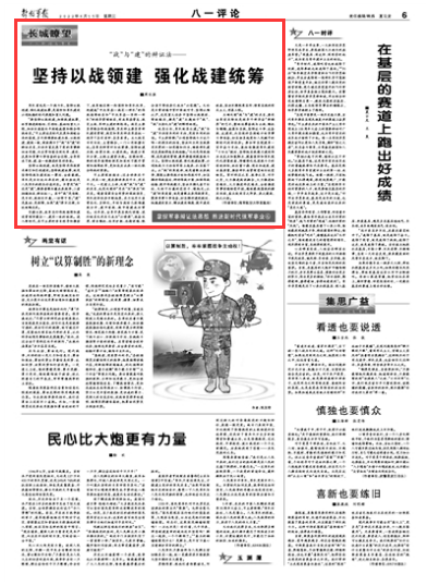 “要坚持以战领建,加强战建统筹,抓紧推进战略性、引领性、基础性重大工程,加快打造高水平战略威慑和联合作战体系。”习主席站在时代发展和战略全局的高度,多次强调要抓建为战、以战领建、建战一致,深刻揭示了“战”与“建”的辩证关系,不但丰富发展了党的军事辩证法思想,而且贯彻落实到改革、建设、发展和军事斗争准备的全过程,全军形成了战、建、备一体推进的良好局面。