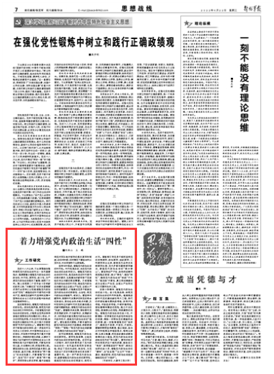 着力增强党内政治生活“四性”