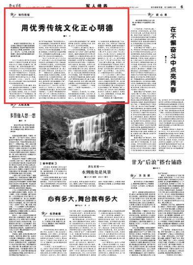 “堤溃蚁孔,气泄针芒。”正心明德,做到慎微慎独至关重要。古往今来,但凡有所建树、成就大业者,无不是慎微慎独之人。东汉时期,面对故人王密暮夜无人知晓的说辞,杨震慨然回绝:“天知,神知,我知,子知。何谓无知!”思想灵魂因慎独而宁静纯粹,道德防线因慎微而坚固持久。所以,用优秀传统文化正心明德,不仅体现在大是大非上,更体现在小事小节中,正如古人所讲,“勿以恶小而为之,勿以善小而不为”。纵观我们党的历史,许多优秀党员干部律己从严、防微杜渐,从一言一行、一点一滴中加强修养,不以“小节无害”而自谅自恕,不因“无伤大雅”而熟视无睹。强军路上,党员干部更要始终铭记“不矜细行,终累大德”的古训,时刻警醒自己“莫见乎隐,莫显乎微”,坚守党性原则、坚持守身如玉,做到“一念之非即遏之、一动之妄即改之”,才能肩负起历史和人民的重托。
