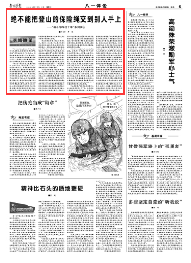 “顶峭松多瘦,崖悬石尽牢。”登山处处充满艰险,保险绳有时候就是“救命绳”,牢牢抓在自己手上才放心。同样的道理,我们这样一个大国、这样一支军队,绝不能把登山的保险绳交到别人手上,一定要在一些关键领域、核心技术上取得突破,努力成为领跑者。