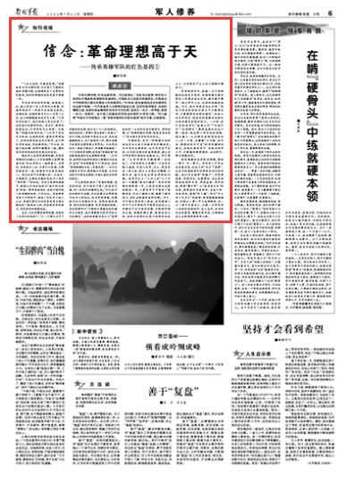 “人生天地间,长路有险夷。”回顾我军95年光辉历程,不仅留下了彪炳史册的卓著功勋,也熔铸形成了宝贵的红色基因,坚定的理想信念就是其中重要一条。
