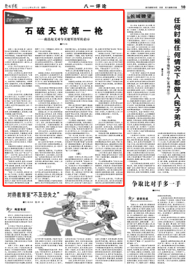 5年前,在庆祝中国人民解放军建军90周年大会上,习主席用“三个伟大事件”来评价南昌起义的重要意义和历史贡献:“这是中国共产党历史上的一个伟大事件,是中国革命史上的一个伟大事件,也是中华民族发展史上的一个伟大事件。”