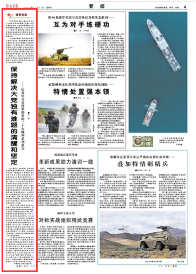广大官兵尤其是党员干部应深入学习宣传贯彻党的二十大精神,在学习热潮中接受全面深刻的政治教育、思想淬炼、精神洗礼,在思想上政治上不断检视、剖析、反思自己,同党中央要求“对标”,拿党章党规“扫描”,用人民群众期待“透视”,以整饬作风激浊扬清,以严明纪律强化约束,以从严治吏匡正用人导向,以“打虎”“拍蝇”“猎狐”惩治腐败,心往一处想、劲往一处使,在党的旗帜下团结成“一块坚硬的钢铁”,凝聚起如期实现建军一百年奋斗目标的强大力量。