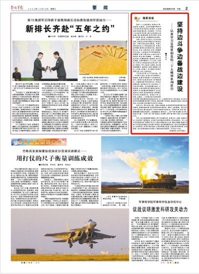 党的二十大报告提出,坚持边斗争、边备战、边建设。这是有效履行新时代人民军队使命任务的必然要求,也是推动我军高质量发展、实现建军一百年奋斗目标的科学决策,要求全军坚持以战领建,强化战建统筹,做好军事斗争准备,形成战、建、备一体推进的良好局面。