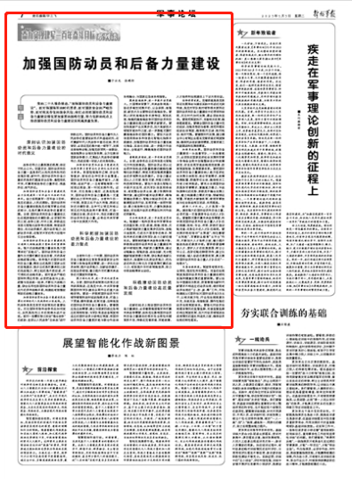 党的二十大报告提出,“加强国防动员和后备力量建设”。面对强国强军的时代要求、面对国家安全的严峻形势、面对现实存在的战争风险,我们必须把国防动员和后备力量建设摆在更加重要的战略位置,努力在新的起点上推动国防动员和后备力量建设实现高质量发展。