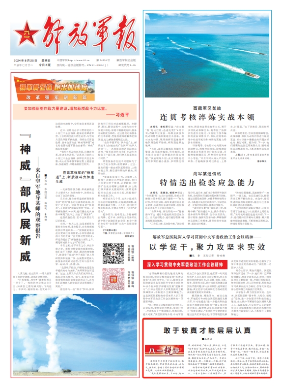 上行下效,上真下实。领导干部要保持一颗公心,勇于在作风纪律上较真、在工作职责上较真、在批评监督上较真,弘扬浩然之气、坚持公平公正,影响和带动官兵发扬认真精神,高标准高质量推进工作落实,不断开创强军事业新局面。
