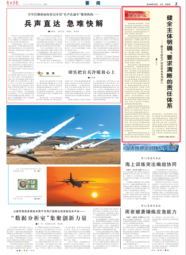 各级纪委是党内监督专责机关,肩负着党和人民重托,必须履行好监督责任。深入推进全面从严治党、全面从严治军,各级纪委要找准定位,全面履行党章赋予的职责,推进政治监督具体化、精准化、常态化。要督促落实全面从严治党、全面从严治军责任,推动主体责任和监督责任落到实处。军队行业部门也要强化廉政主管责任,推动党委主体责任、纪委监督责任与行业部门廉政主管责任一起,构成军队党风廉政建设责任体系的新布局。