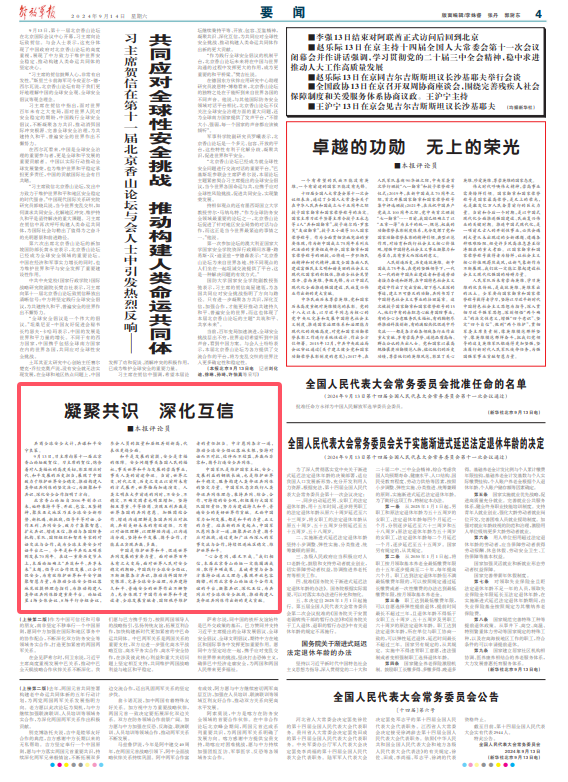9月13日,习主席向第十一届北京香山论坛致贺信。习主席的贺信,饱含着对人类福祉的高度关切,彰显顺应时代、和平发展的历史担当,展现了中国致力于维护世界安全稳定、推动构建人类命运共同体的坚定决心,为凝聚和平共识、深化安全合作指明了方向。