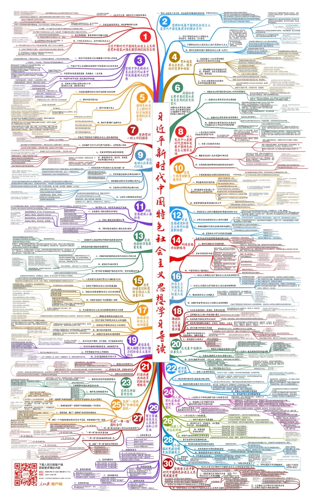 十九大召开一周年之际,人民日报客户端根据权威资料整理绘制了一份思维导图——习近平新时代中国特色社会主义思想学习导读,一起学习!
