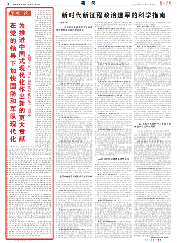 解放军报社论:在党的领导下加快国防和军队现代化 为推进中国式现代化作出新的更大贡献