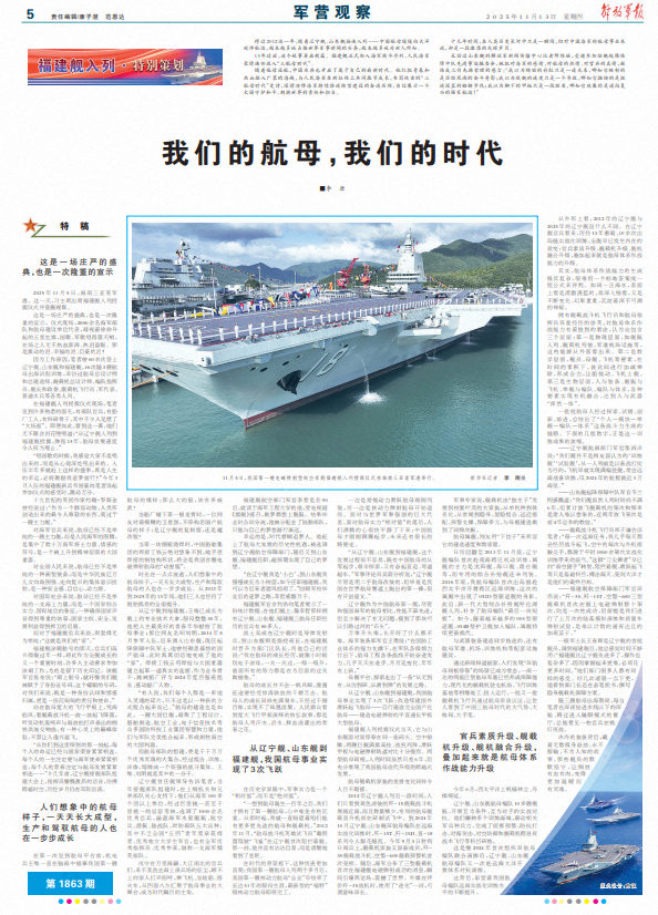 军事专家说,舰载机由“独生子”发展到枝繁叶茂的大家族,从单机种到体系化,从常规到隐身,显隐组合、远近搭配、预警支撑、保障多元,与母舰建造做到了同频共振。