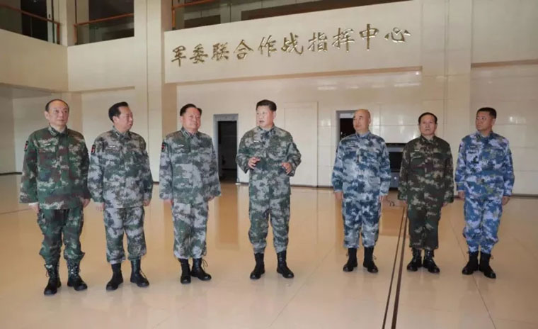 小组梳理发现,史上最强军改建立起“军委管总、战区主战、军种主建”的四梁八柱以来,习近平已经陆续视察了陆军、海军、火箭军、战略支援部队等军种机关,而指挥各个战区的“大脑”——军委联合作战指挥中心,习近平就去了两次。第一次是2016年,他首次身着迷彩服、作战靴,以“军委联指总指挥”的身份亮相。而第二次是2017年,距离十九大闭幕仅10天,习近平带领新一届军委班子,统一身着迷彩再次亮相,宣示意味很明显,“今天到军委联指中心来,就是要亮明态度,从我做起,从军委做起,强化备战打仗导向……”