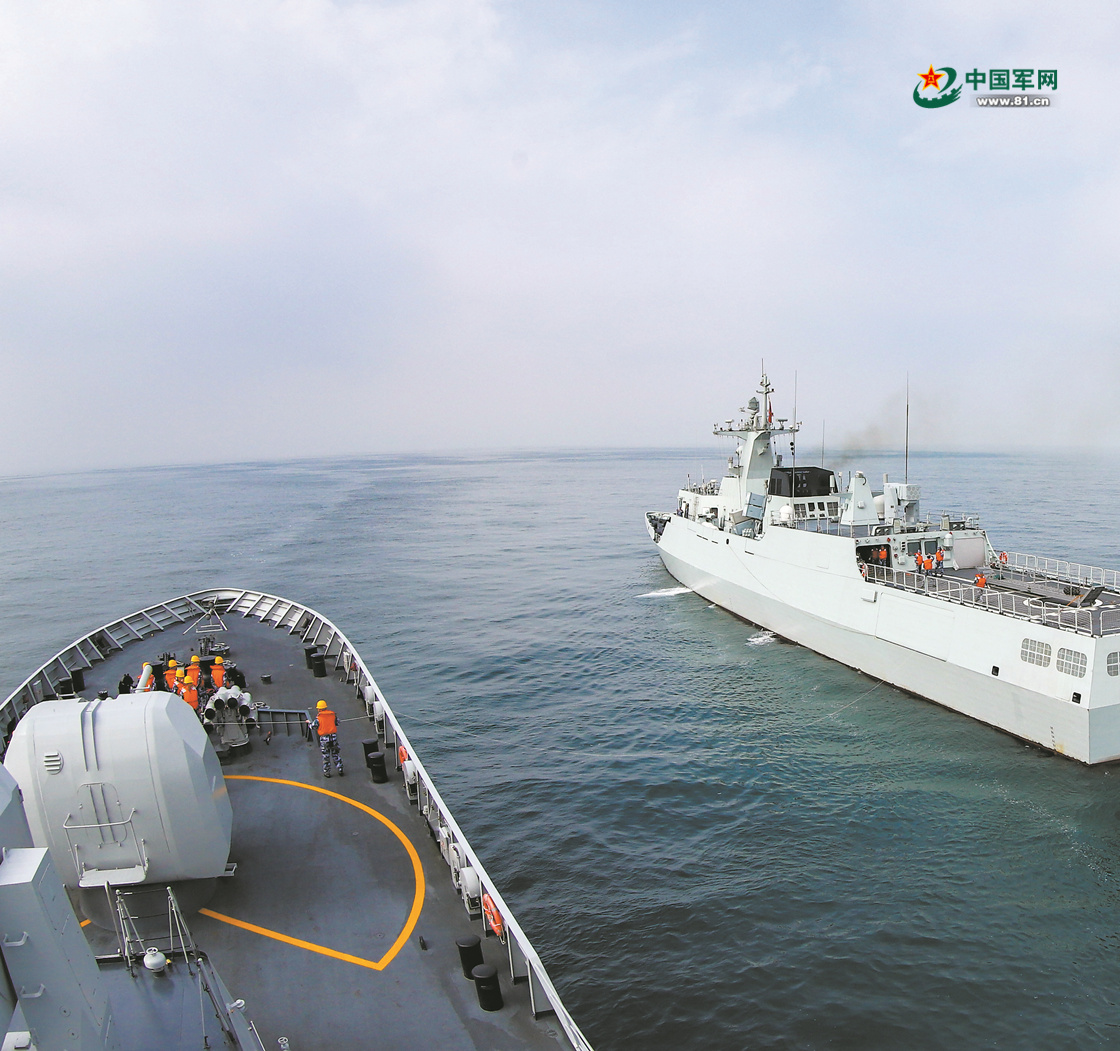 近日,东部战区海军某护卫舰支队派出由护卫舰和导弹快艇组成的舰艇编队,赴某海域开展多课目实战化训练。