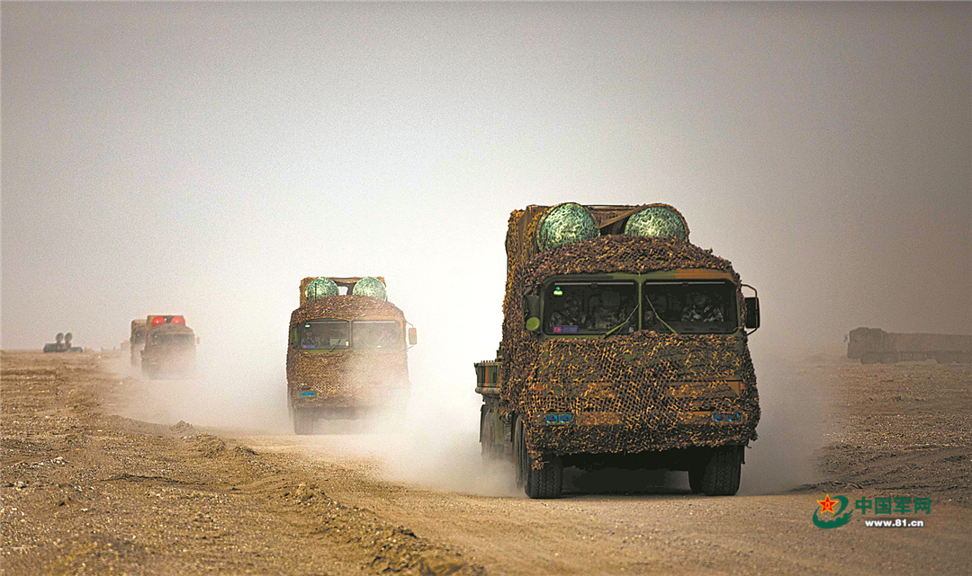 炎炎夏日,南部战区空军地导某旅千里机动,奔赴西北戈壁开展实兵实弹演训。