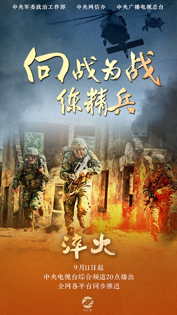 经中央军委批准,中央军委政治工作部联合中央网信办、中央广播电视总台,摄制思想解读类融媒体片《淬火》。该片从9月11日起在中央广播电视总台央视综合频道播出。《淬火》共6集,分别为《军旗下的誓言》、《向战为战练精兵》、《荣光照耀新征程》、《步调一致向前进》、《中流击水勇担当》、《同心奋进创一流》。